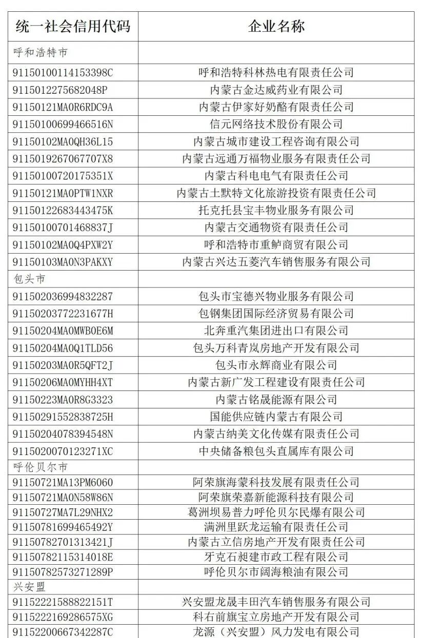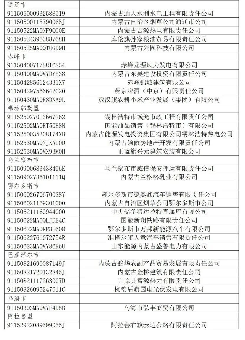 附件:2025年內蒙古自治區統計誠信企業評選認定公示名單